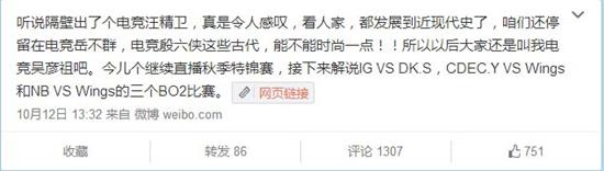DOTA2解说海涛在12日下午发表了一条微博,调侃隔壁游戏泄露战术事件,并自黑一记DO圈的电竞岳不群已经跟不上时代了。