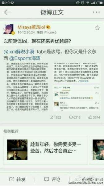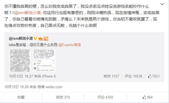 记得之前有个采访,小漠称现在解说应该感谢海涛将第一视角+淘宝店结合的模式带到解说界来。这么快就否定了自己之前称赞过的前辈?不管海涛调侃泄密事件是对是错,但起码是对事,上来提别人的家庭,扩大AOE范围的做法有待商榷。