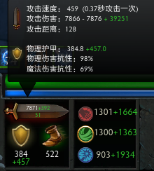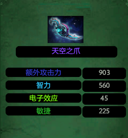 头比较酷炫,有35%机率闪现到敌人身后并获得0.8秒最大攻速效果,看着很醉人,然而我攻击并不高,不如一个大招清了啊...还好首饰加了16点雷霆风暴。2技能和大招都加到了3级,2技能可以愉快地回血+限制了,大招也有了一定的输出。只是血量真心低。兽王2技能伤害也不高。。。不过终于顺利打完了沙王。继续打7、8波,并升级了武器第3条属性,如下: