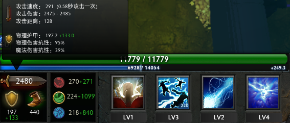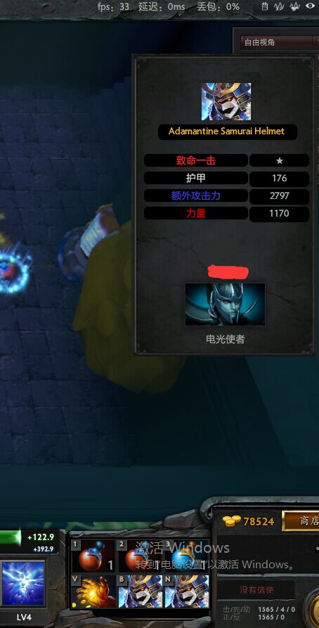 第二个暴击头非常不错,力量1170、护甲176、白字攻击力2797,神器啊!配合上点金手。。。可惜剑圣掉了,要不这两件装备妥妥地通关啦。
