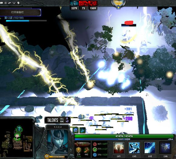 开了2-3波怪后,再开保卫村庄,结果发现剑圣掉线,然后一连进来就掉,再也进不来了,最后退了。好吧,后期稳过英雄没了。然后再看了一眼兽王,好吧,第一属性也加的智力......这是走2技能的路线?