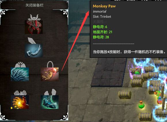 一波完毕,由于定位为辅助,所以要用二技能限制小怪,所以第一次武器属性加了这个: