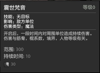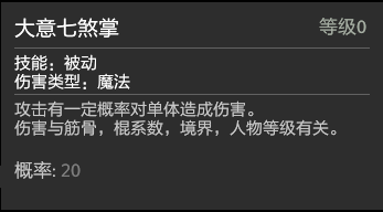 一个BUFF型的AOE攻击技能,伤害可观,但是触发概率有点不够看,但是间隔时间只有5秒,还算可以接受