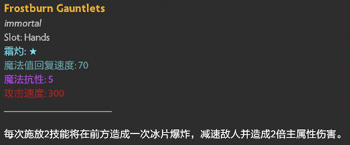 虽然属性限制为智力,但和霜灼手套相比拥有范围优势,用起来感觉很舒服。