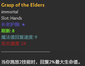 和白色魔法帽,卫士胫甲并列为回血三神器,放技能的时候小心别被晕了。