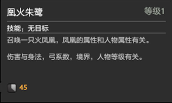 2.凰火朱鸾:召唤凤凰,前期凤凰能抗能打。后期打BOSS基本忽略。持续时间跟cd一样长。