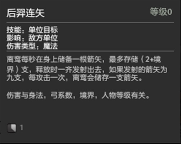 3.后裔连矢,技能可以储值,释放的时候射出一排箭(类似WAR3一些装备的引导剑)。
