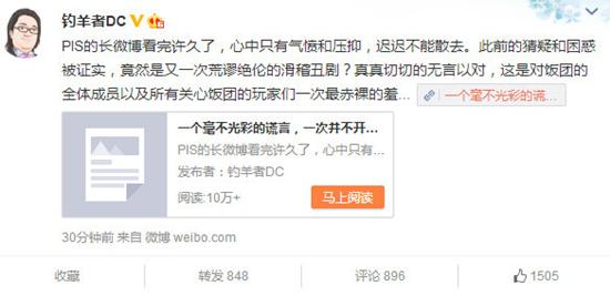 DOTA2DC微博指责PIS 不断被困难克服的一生