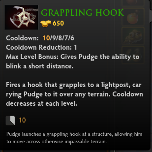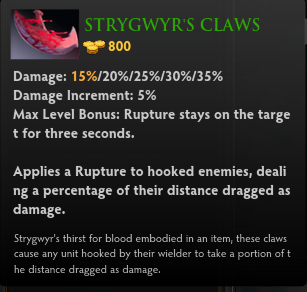 钩中敌方屠夫后,按被钩中后移动的距离附加伤害(血魔大招撕裂的效果)