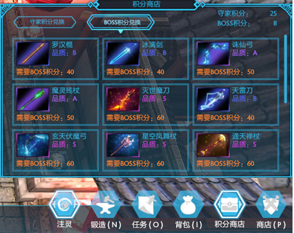 2.积分系统:现在守家会有一个守家积分。击杀野外BOSS会有BOSS积分。可以在积分系统换取武器。