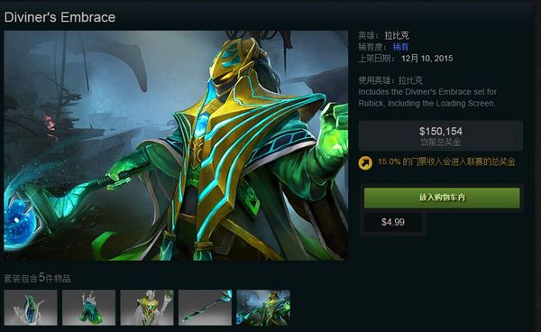商店出售的拉比克套装 售价4.99美刀 15%的门票收入加入2015年DOTA2辉夜杯