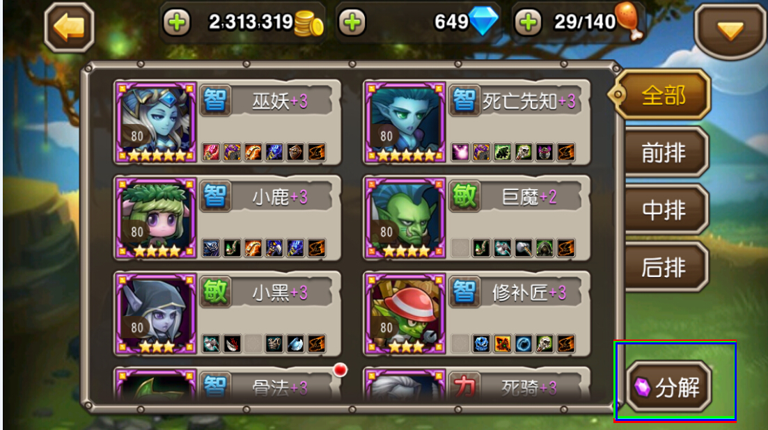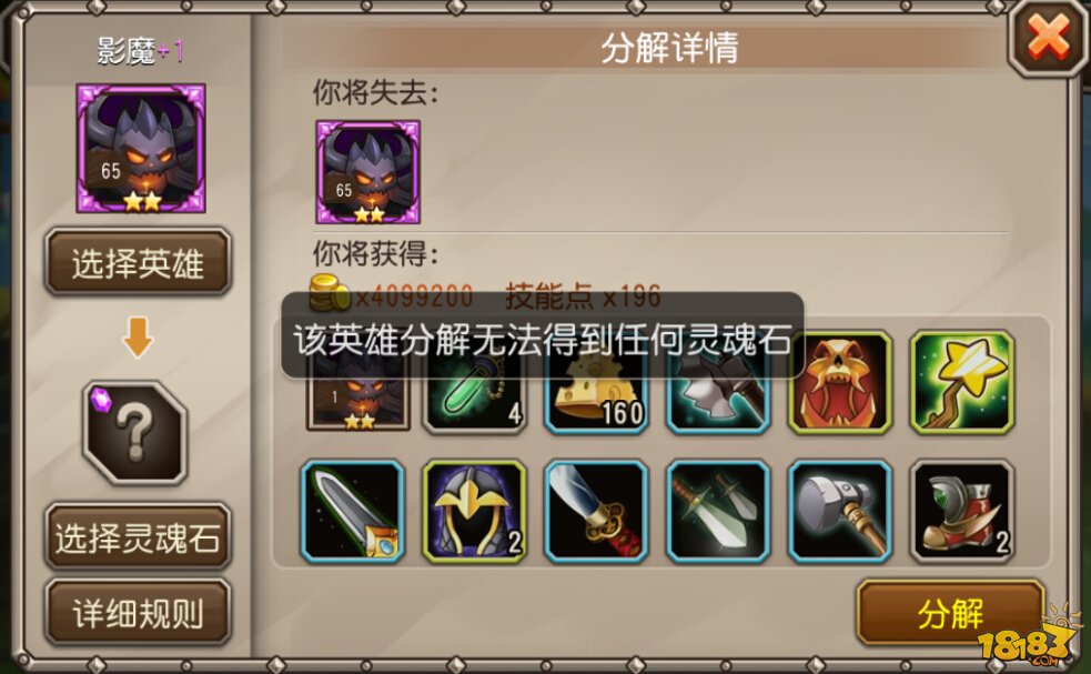 英雄分解的功能入口如上图,在英雄面板的右下角多了一个分解的功能。