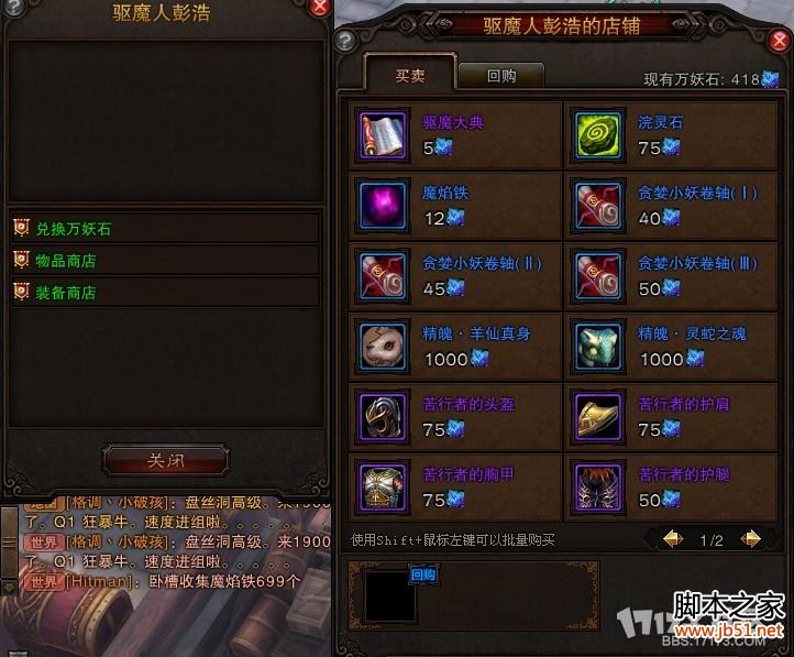 最后的最后,万妖石记得不要乱换东西!!!12个万妖可以换一个魔焰铁,一周上限可以换300个万妖石,这个自己想想吧~~