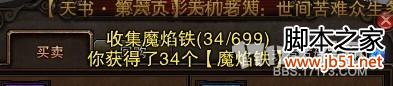 这把紫武是需要物品累计,方可兑换,魔焰铁699个。