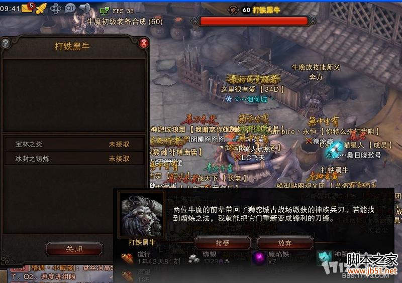 大家肯定会想,怎么获得啊我去!不要着急,完成对话后,旁边有“打铁黑牛”点击他,会出现两个任务。