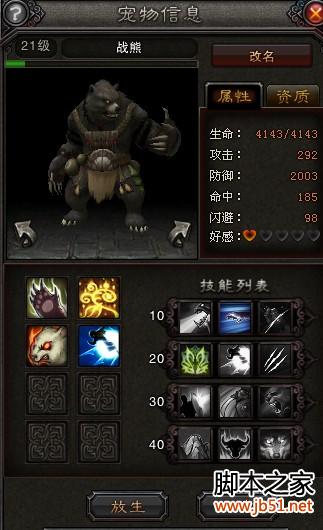 购买战熊的时候一定要注意战熊的资质,某一项9以上是好的,比如想以后变成白色就买活跃资质高的,当资质达到60以后就可以到宠物雇佣NPC那鉴定了;