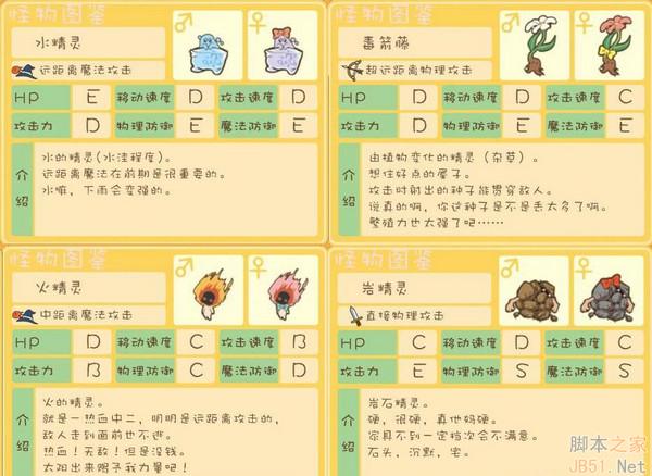 精灵-火精 远程战士型,115/30B/30/20,白天加成,中距离攻击不会后退,作为战士却很脆,作为输出攻击距离和攻击力也很尴尬,3级兵最低的实用度
