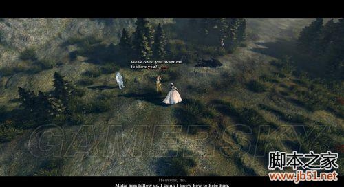 在杀死巨狼的南部空地可以发现一只鬼魂,与之对话让你的同伴操控他;将他带到南部森林的绞刑架;客气激活他的记忆