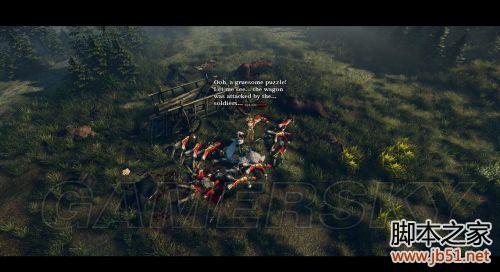 从村庄北部的出口来到森林,进入森林中部;在森林中部处可以发现卫兵的尸体剧情;自动开启找寻狼群巢穴的支线任务。这个支线与寻找村长的主线可以同时完成,所以不必刻意先进行