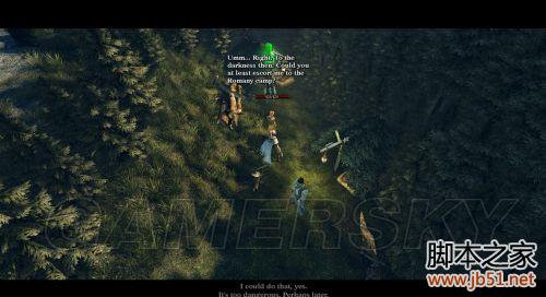在森林入口的右侧,找到一处有部队驻守的小型据点,同时里面的行商人对话可以接受到本地区的第二个支线人物--护送商人到ROMANY的营地