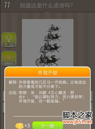 疯狂猜成语 四辆马车并排行驶 答案是什么成语