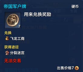 帝国军户牌可以在分裂迷宫或24人江流市(BOSS箱子掉落)获得