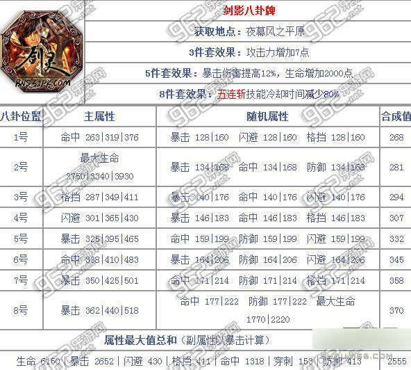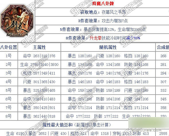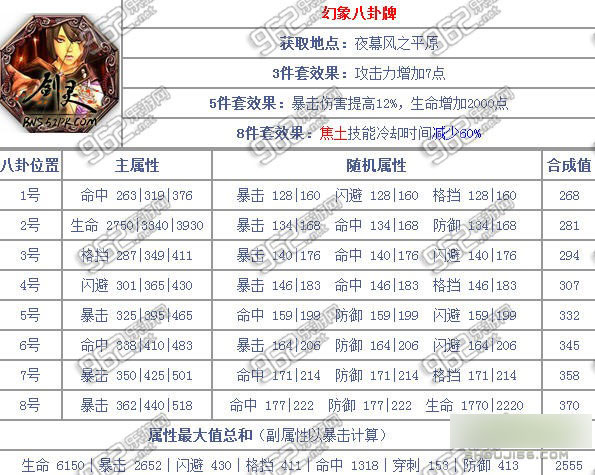 剑灵玄武帝各职业八卦牌属性大全 玄武帝八卦牌属性介绍