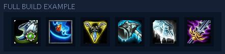六神装:gank鞋、蛋刀、三相、冰锤、冰甲、玛莫提乌斯之噬