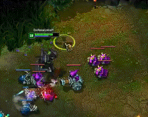 那么在没有闪现,双方又一定要打团时应该怎么办呢?正确的做法就是在双方开战时,从侧面切入,核心目标就是对面输出位,做法见下图。