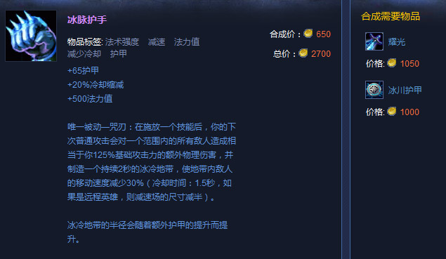 现在的冰拳是非常好用的装备。有护甲,有减速冷却,有蓝量增加,更重要的是有减速效果,多少弥补了一点俄洛伊腿短没法留人的缺陷。只要不是前期特别崩盘需要迅速转肉装,都可以出。