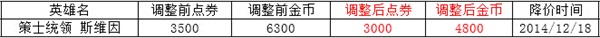 同时,每当有一个新英雄上架,将会有一个旧6300英雄降价至4800级别。本期降价的英雄是策士统领 斯维因