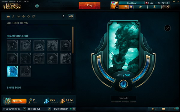 而当你拥有一个碎片---无论是皮肤的还是英雄的:你可以将它和适当的精华,也就是英雄或者皮肤的相结合,这样就可以创造出一个永久的解锁内容(皮肤或英雄)!在截图中可以看到,我需要580个英雄精华来让我的巨魔之王碎片合成为一个永久的英雄,但是不幸的是,我没有足够的精华!