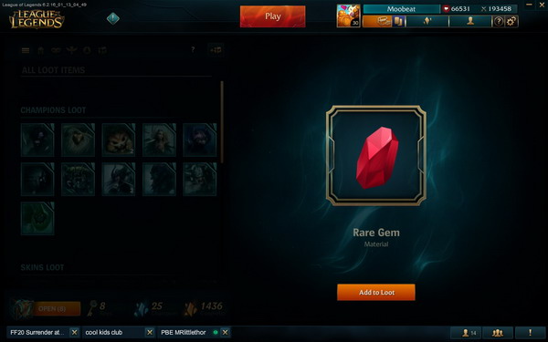 除了很多英雄和皮肤碎片以外,你还可以打开一个稀有宝石,除了包含一个随机的碎片,还将会给予你一个新的水晶和钥匙。
