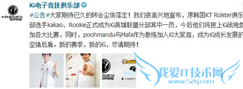 原韩国KT Rolster俱乐部选手kakao、Rookie正式成为iG英雄联盟分部其中一员,kakao也终于不用再山西挖煤了。在之前的报道中大家都知道签约被定到了1000W而破裂的游戏,所以这次的IG签约的价格应该和其他的公司一样,是差不多在500W年薪左右。