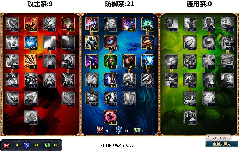 这种打野只需要将攻击天赋点到9点即可,剩下的全部点到防御天赋中。