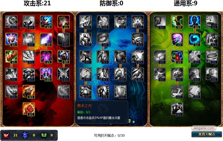 符文方面点出3个法术强度大精华、9个红色攻击符文、9个黄色物抗符文、3个蓝色法抗符文和6个蓝色法术强度符文。这套符文适合末日、天使、皎月等,可以为 AP打野英雄提供法术强度伤害,物理攻击和英雄抗性。同时还可以更好的提供英雄的输出能力和刷野效率。天赋方面点出21点攻击9点通用,可以提高英雄的初始法术强度、回蓝速度、和移动速度等。可以让AP打野英雄更好的在野区发育。