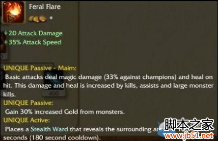 进化:在使用瑞格之灯击杀25个大型野怪后会自动升级为该装备