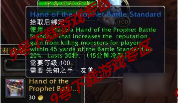 先知之手战旗:放置一面先知之手战旗,使45码内击杀怪物获得的声望提高20%,持续30秒
