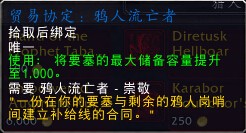 答:军需官:守备官科索斯,塔纳安丛林联盟营地雄狮之巢 声望物品 贸易协定:鸦人流亡者 使用:将要塞的最大储备容量提升至1000 价格:2500金币 声望需求:鸦人流亡者声望崇敬 先知之手战旗 使用:放置一面先知之手战旗,使战旗附近45码范围内的玩家通过击... >>详细