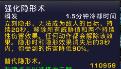 强化隐形术有所增强,会移除2个DOT。用来硬吃某些伤害或者消失躲技能用,某些BOSS会用到的。