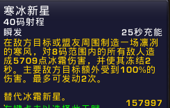 寒冰炸弹有所改动,在有寒冰指BUFF甩冰枪时,目标要保持这个DOT。虽然在测试服里削弱过一次伤害,但依然是冰法不二的选择。
