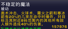 不稳定的魔法寒冰箭和霜火之箭伤害总和也就占冰法伤害比例的20%或许还不到,这天赋对于冰法而言就是个渣,请无视。