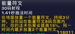 能量符文持续时间加长,回蓝效果移除。冰法不需要考虑回蓝,增加DPS方面,优点是稳定,缺点也是稳定,只有纯木桩战斗才会考虑,BOSS战有纯木桩的吗?