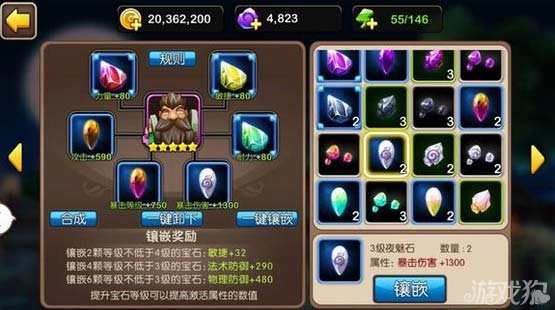 宝石佩戴:俺哥没有保命技能,站位也靠前,双抗血量成长都不如劣人,所以索性俺哥不要抗性宝石了,将攻击发挥极致。