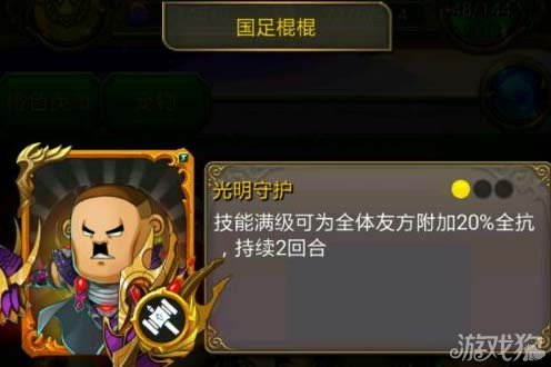 武器激活,每回合增加免伤10000,虽然概率不高,但毕竟是全体都受益,效果还是杠杠的。如果你打算做一个棍棍橙卡,最终转型到防骑是个不错的选择。
