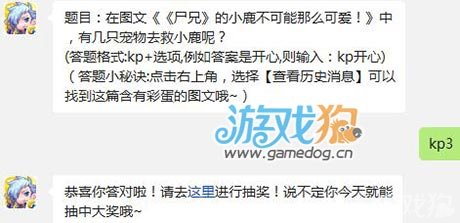 今天问题的答案是kp3,也就是说在图文尸兄的小鹿不可能那么可爱中,有3只宠物去救小鹿。