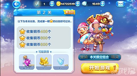 关卡一共分3种类型,先来介绍第一种,关卡图标为小星星的关卡,其实就是收集和积分类,达到任务要求的收集进度和积分进度即可轻松过关。