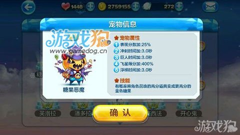 技能:有概率将人物召唤的高分道具变成更高分的金色糖果