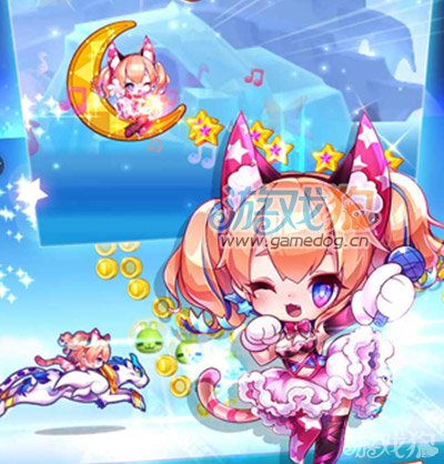 猫小魅的技能和水力型宝非常相似,触发技能时候坐在月亮上唱歌,将金币变成高分五角星,技能带有冲刺效果,估计吃到音乐符号还会增加表现分。魔力宝贝虽然能将金币变成高分蛋糕,但是这个技能没有冲刺效果,也就意味着有很多高能量蛋糕会浪费。