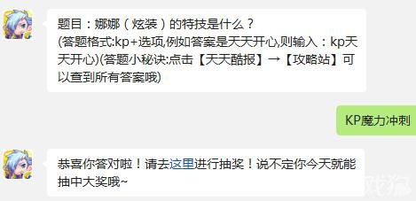 今天问题的答案是魔力冲刺,玩家们只要回复kp魔力冲刺即可。回答正确的玩家,就能去抽奖啦。